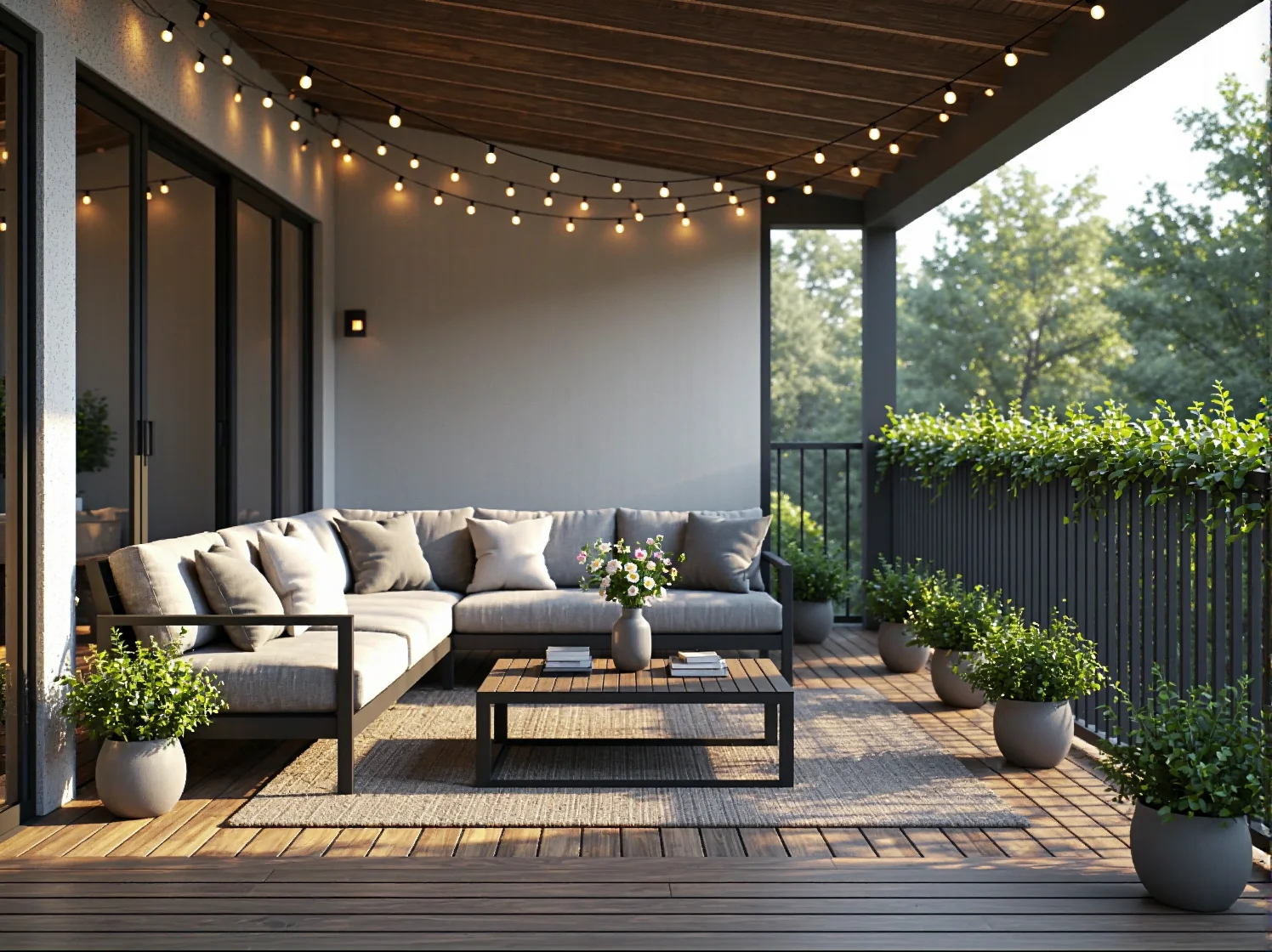 Girlandy świetlne (tzw. cotton balls lub żarówki w stylu industrialnym) owinięte wokół barierki to absolutny must-have. Lampiony i latarenki ustawione na podłodze dodadzą przytulności. Jeśli lubisz nowoczesne rozwiązania, poszukaj donic z podświetleniem LED.
