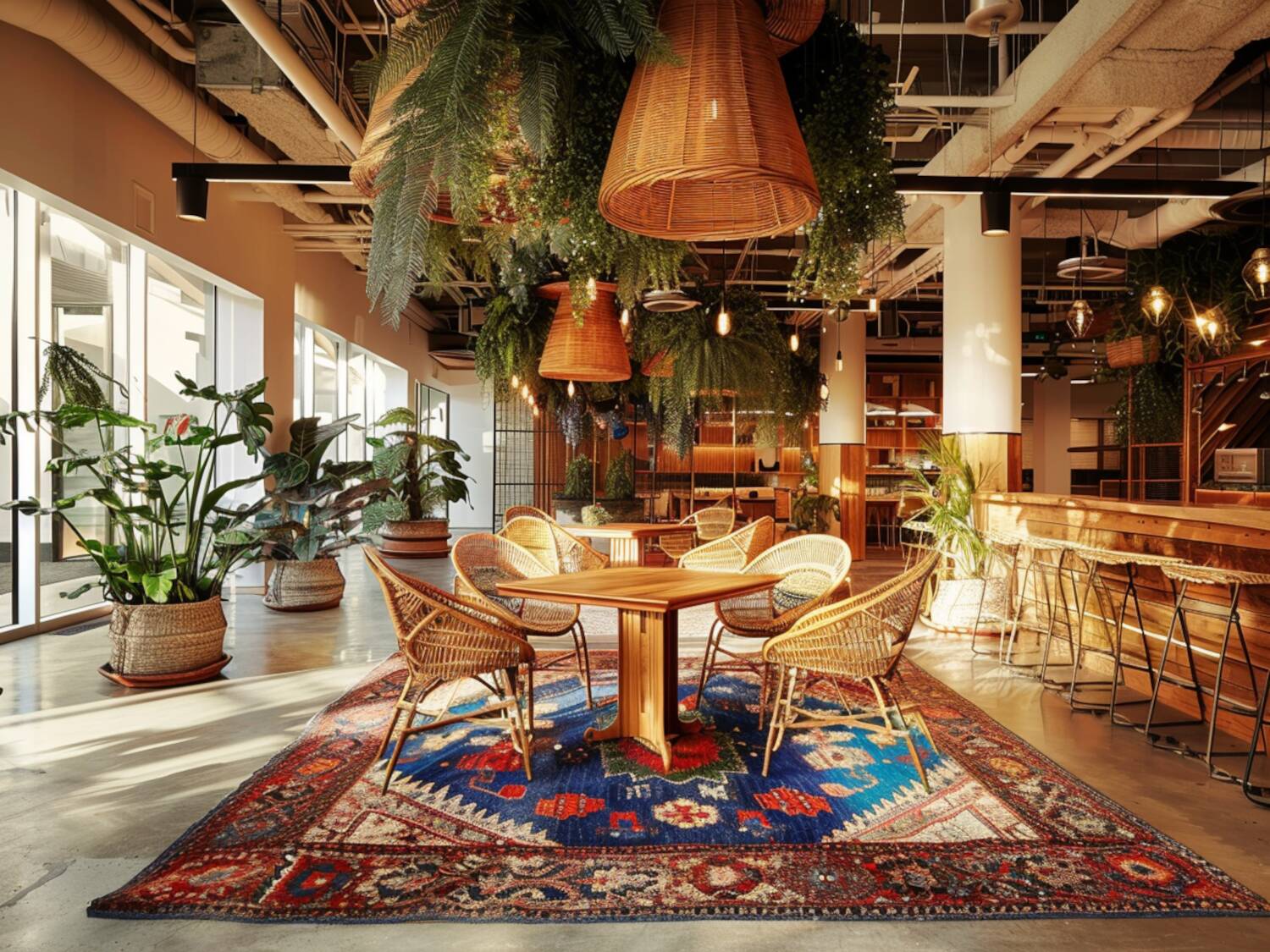 Styl boho (bohemian) wywodzi się z artystycznej, swobodnej estetyki, która kładzie nacisk na kolor, różnorodność tekstur i eklektyzm. W przestrzeniach coworkingowych, styl boho może wprowadzić ciepło, inspirację i kreatywność, zachęcając do spontanicznych rozmów i nieformalnej współpracy. Kluczowymi elementami tego stylu są: