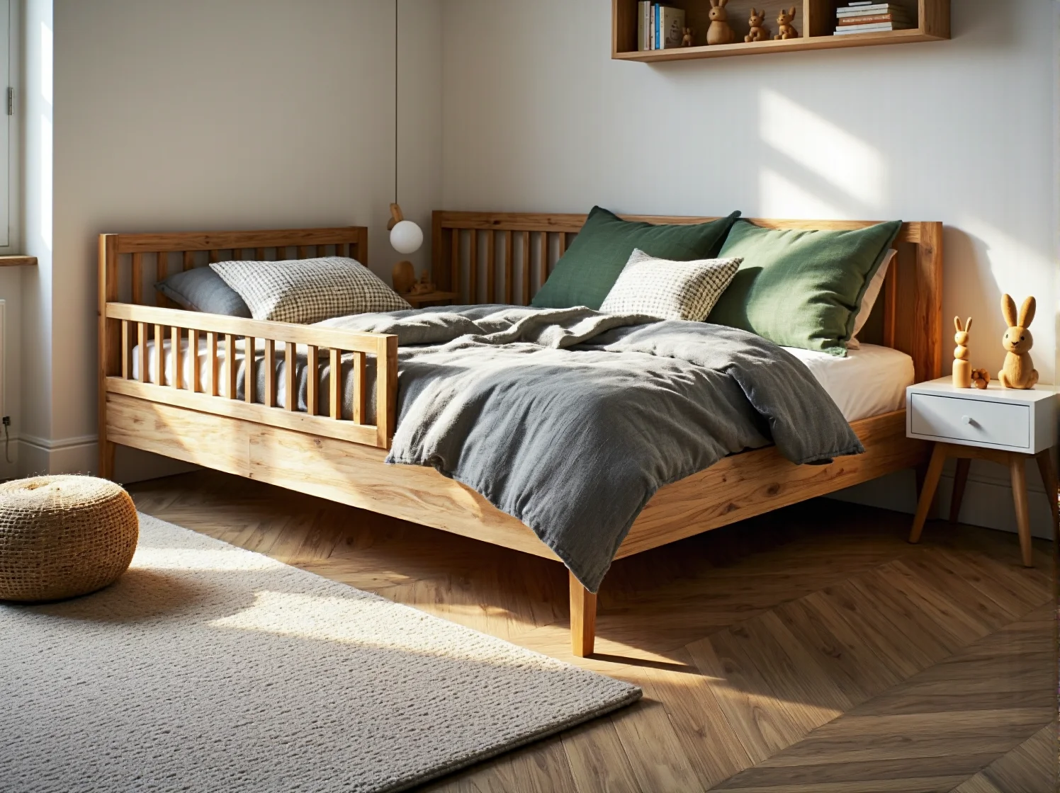 Jeśli wybierasz łóżko ze szczebelkową barierką, zwróć uwagę na rozstaw listewek. Nie mogą być one zbyt szerokie, aby głowa dziecka czy nóżka nie uwięzła między nimi podczas snu. Standardy bezpieczeństwa precyzyjnie określają te odległości, ale przy meblach robionych na zamówienie u stolarza warto o to dopytać.